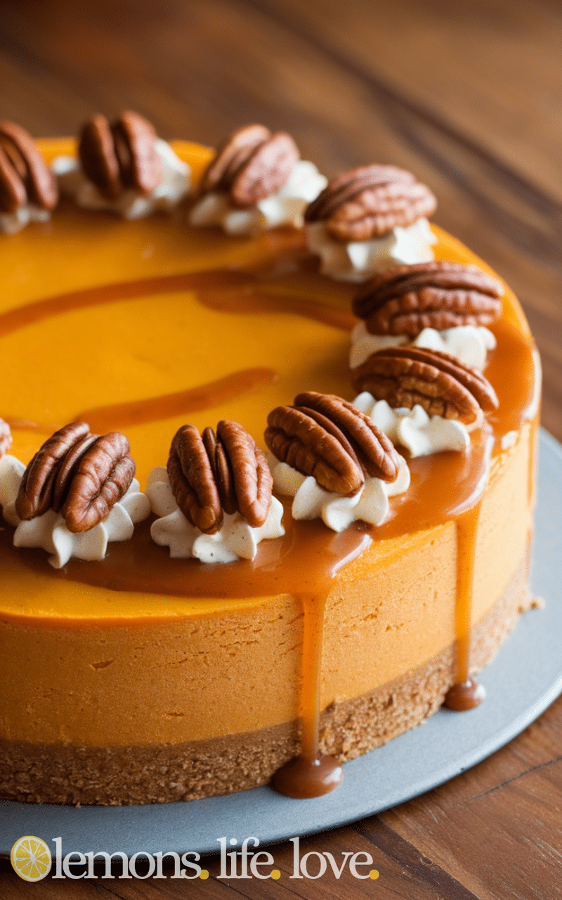This fall favorite is one of the best Cheesecake Recipes for cozy seasons. Pumpkin puree and warm spices create a comforting, creamy dessert that’s perfect for autumn gatherings.