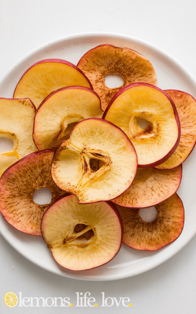 - Serve immediately and enjoy crispy Air Fryer Apple Chips.
