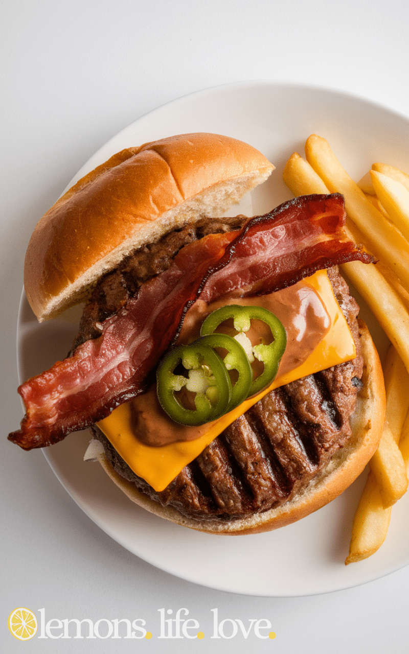 The Spicy Jalapeño Burger is one of the yummiest crowd-pleasing burger recipes because it brings a spicy kick with fresh jalapeños and melted pepper jack cheese and it adds flavor to every bite and it is easy to prepare and it makes burgers exciting and it is perfect for spice lovers and it pairs well with crisp lettuce and tomatoes and it is a burger that stands out at parties and it is fun to make at home and it is one of the crowd-pleasing burger recipes everyone will enjoy.