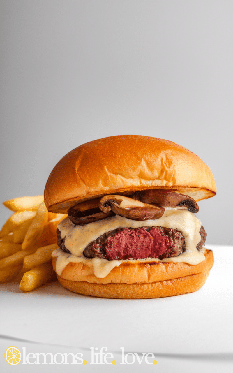 The Mushroom Swiss Burger is one of the best crowd-pleasing burger recipes because it adds rich flavors with sautéed mushrooms and creamy Swiss cheese and it melts perfectly over a juicy beef patty and it is easy to prepare and it makes your burger meal feel gourmet and it pairs well with fresh lettuce and toasted buns and it is a burger that impresses guests and it gives a rich, savory taste with every bite and it is simple to make at home and it is a favorite for mushroom lovers and cheese lovers alike.