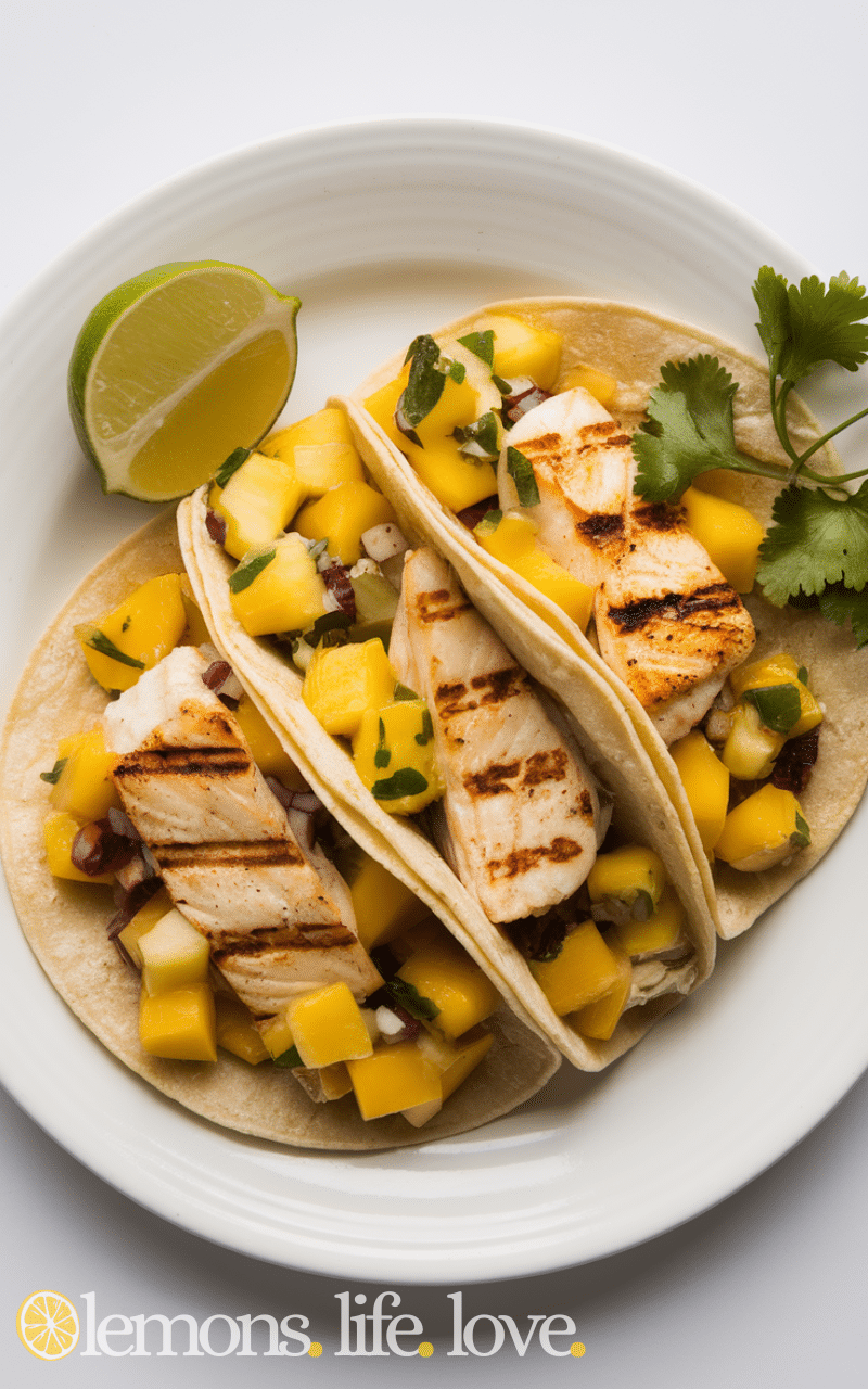 - Assemble tacos with grilled fish, mango, cabbage, and a drizzle of lime juice.