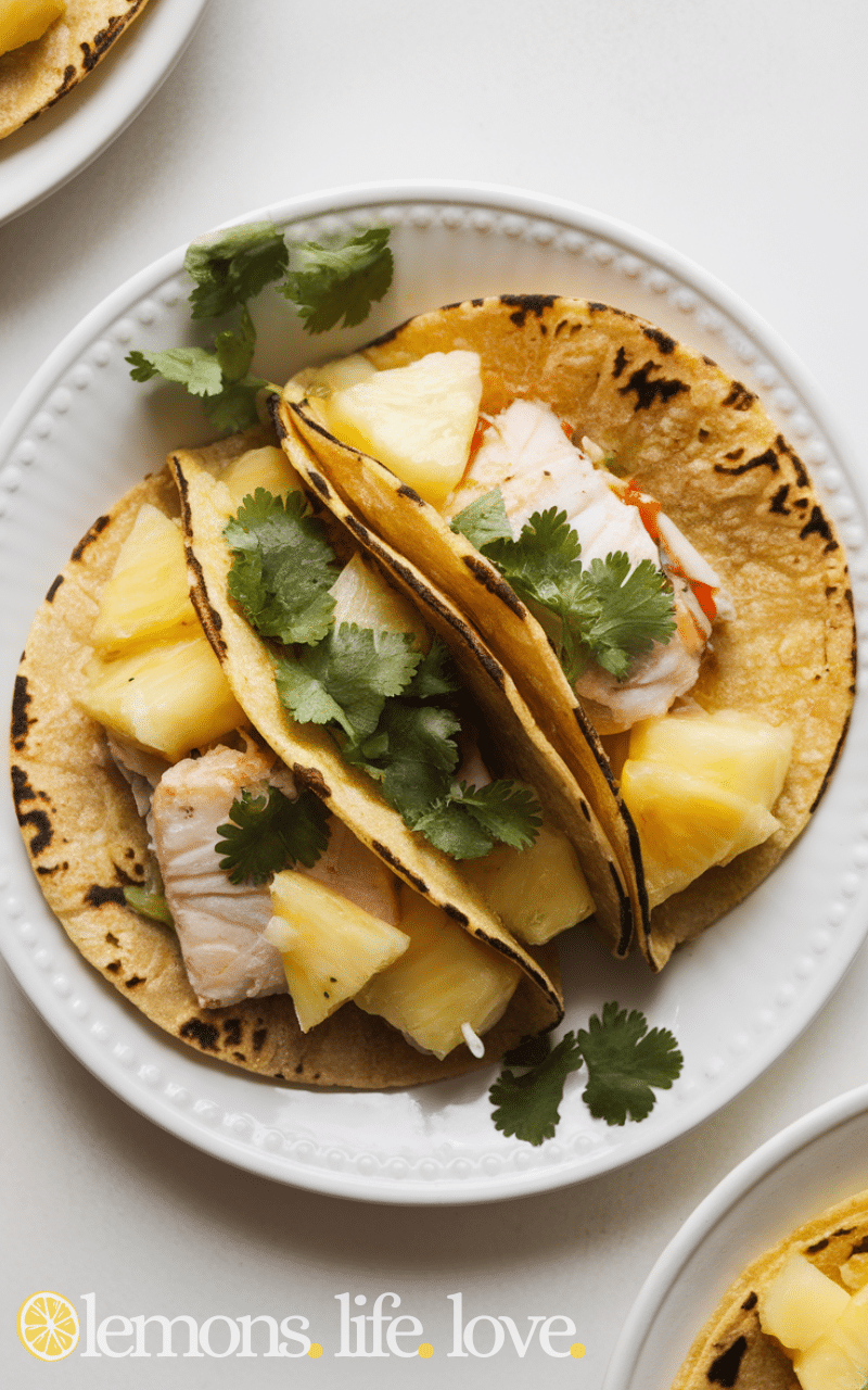 Pineapple Fish Tacos are tropical and fresh and these easy fish tacos feature sweet pineapple chunks with tender fish and a crunchy slaw and the flavors complement each other perfectly and the result is a refreshing taco meal and these easy fish tacos are simple to make and perfect for summer lunches or dinner parties and everyone will enjoy the sweet and savory combination.