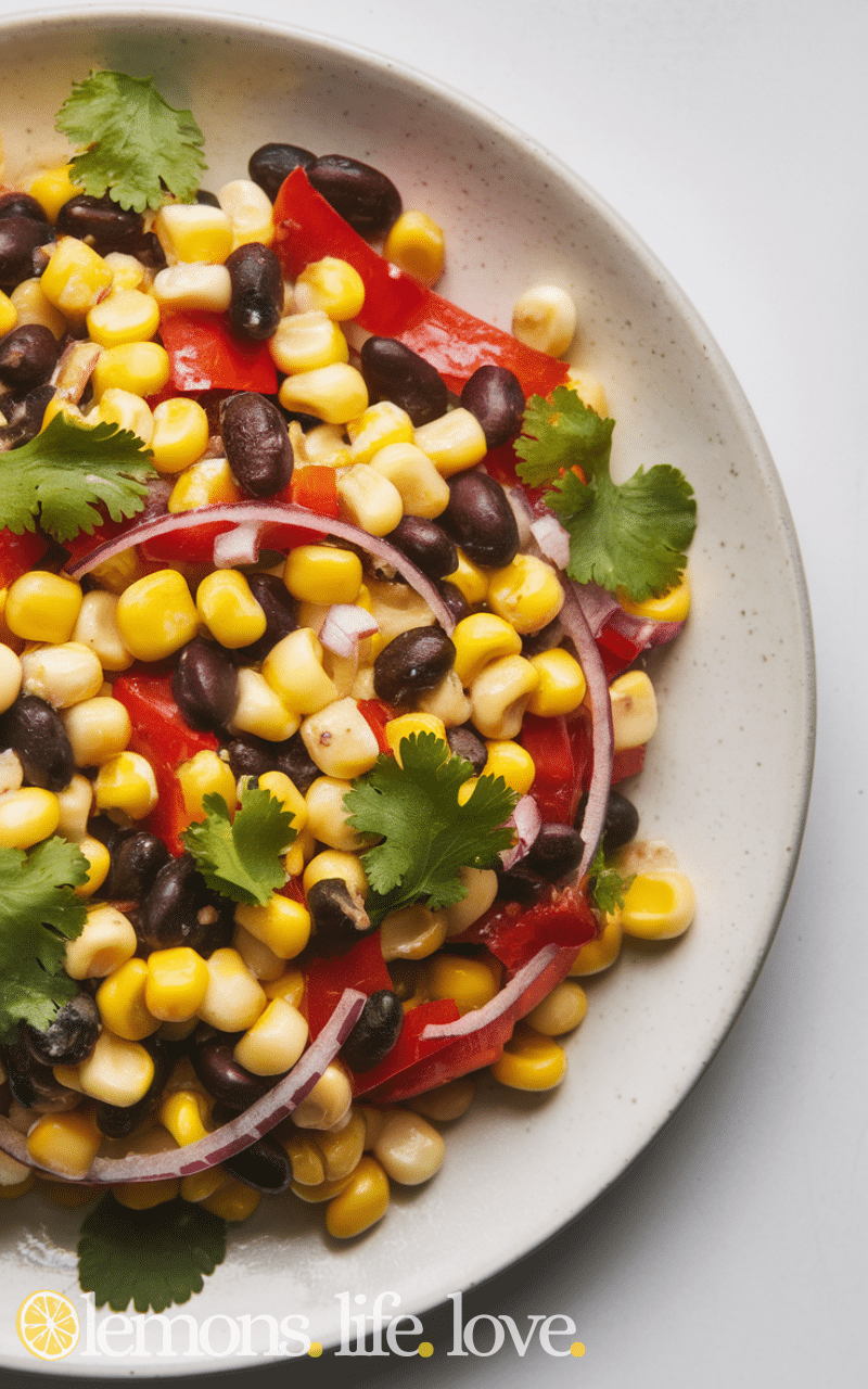 Corn Black Bean Summer Salad is a vibrant fresh summer salad that mixes sweet corn with black beans and red bell pepper and red onion and fresh cilantro and lime juice and it’s easy and colorful and healthy and perfect for summer meals and picnics and every bite is crunchy and tangy and satisfying and this fresh summer salad is simple to prepare and refreshing and brings a mix of flavors and textures to your table and makes meals bright and fun and enjoyable.