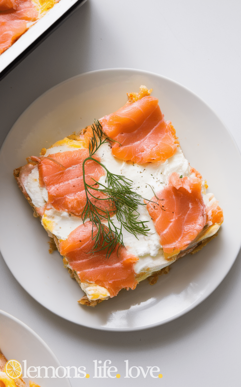 Smoked Salmon Breakfast Casserole is luxurious, flavorful, and light so it makes a gourmet morning meal because the delicate smoked salmon combines with creamy eggs and soft cream cheese creating one of the most delicious breakfast casserole recipes perfect for brunch with friends or a special weekend breakfast while being easy to prepare and looking impressive on the table with fresh herbs as a finishing touch.
