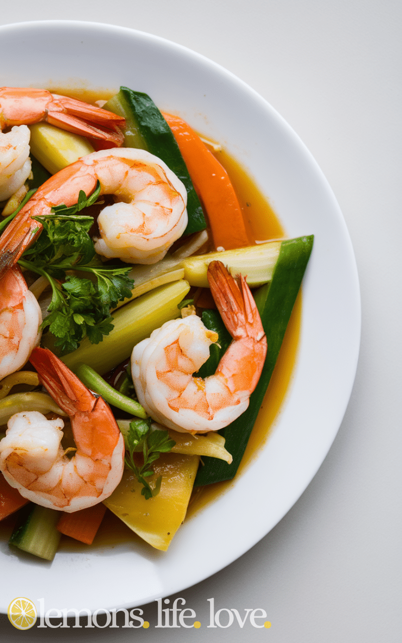 Lemon Garlic Shrimp Stir Fry is a quick stir fry recipe that is light, refreshing, and delicious because juicy shrimp cooks quickly and mixes with fresh vegetables and a zesty lemon garlic sauce so you get a flavorful meal that is easy to make and perfect for a simple lunch or dinner without spending too much time cooking and it’s full of fresh flavors.