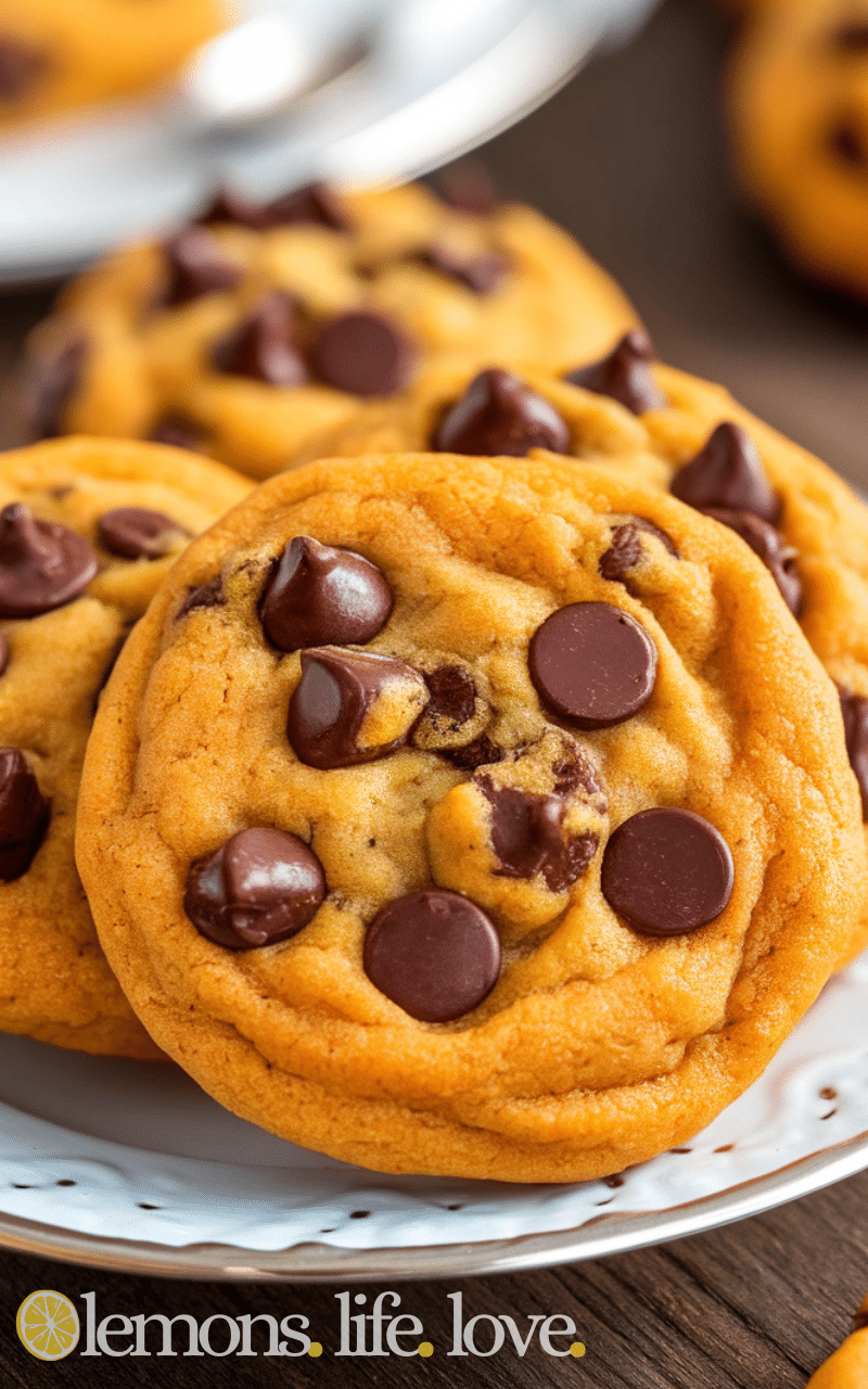 Pumpkin Chocolate Chip Cookies are soft and fluffy and full of pumpkin flavor and sweet chocolate chips so you can enjoy a cozy dessert and the pumpkin gives them a moist texture and makes them taste extra yummy and everyone will love these cookies for a snack or a treat anytime because they are easy to make and fun to bake and you can enjoy them with a cup of tea or coffee.