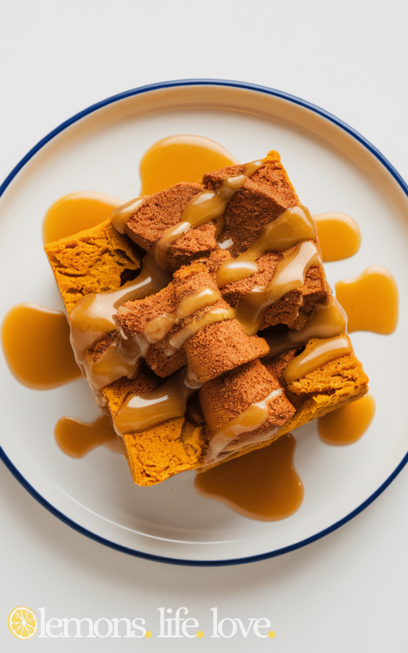 - Serve warm, optionally with cream or caramel drizzle.