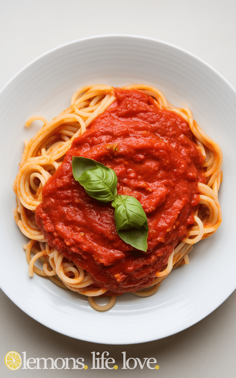 This classic spaghetti with tomato sauce is simple and yummiest and perfect for any day because it combines the rich flavor of tomato sauce with tender spaghetti and herbs and it’s easy to make in under 30 minutes because it uses fresh ingredients and spices and it’s a family favorite because everyone loves the tangy and savory taste and you can even add parmesan cheese to make the flavor richer and creamier and this tomato sauce recipe is a must-try for everyone because it’s easy, delicious, and comforting.