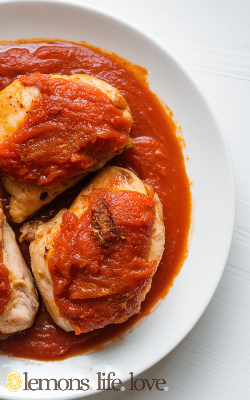 Baked chicken with tomato sauce is easy and delicious because the tomato sauce keeps the chicken moist and flavorful and you can season it with herbs and spices for extra taste and it’s a perfect dinner recipe because it’s simple and satisfying and the tomato sauce creates a rich coating that enhances the chicken flavor and you can serve it with rice, potatoes, or vegetables and this tomato sauce baked chicken recipe is perfect for anyone who wants a tasty, comforting, and easy meal full of tomato sauce goodness.
