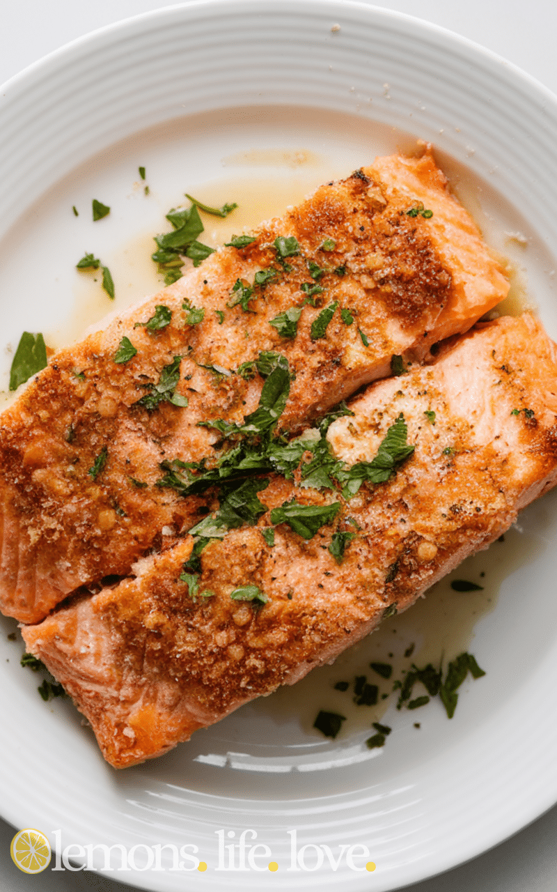 This parmesan crusted baked salmon recipe is cheesy and crispy and also very easy to make and it gives the salmon a crunchy topping that everyone will enjoy and you can serve it with roasted potatoes or a side salad and it is a fun way to make baked salmon recipes exciting and tasty and it takes only a few simple ingredients and it makes a great dinner for family or guests and the parmesan adds a rich flavor that complements the salmon perfectly.