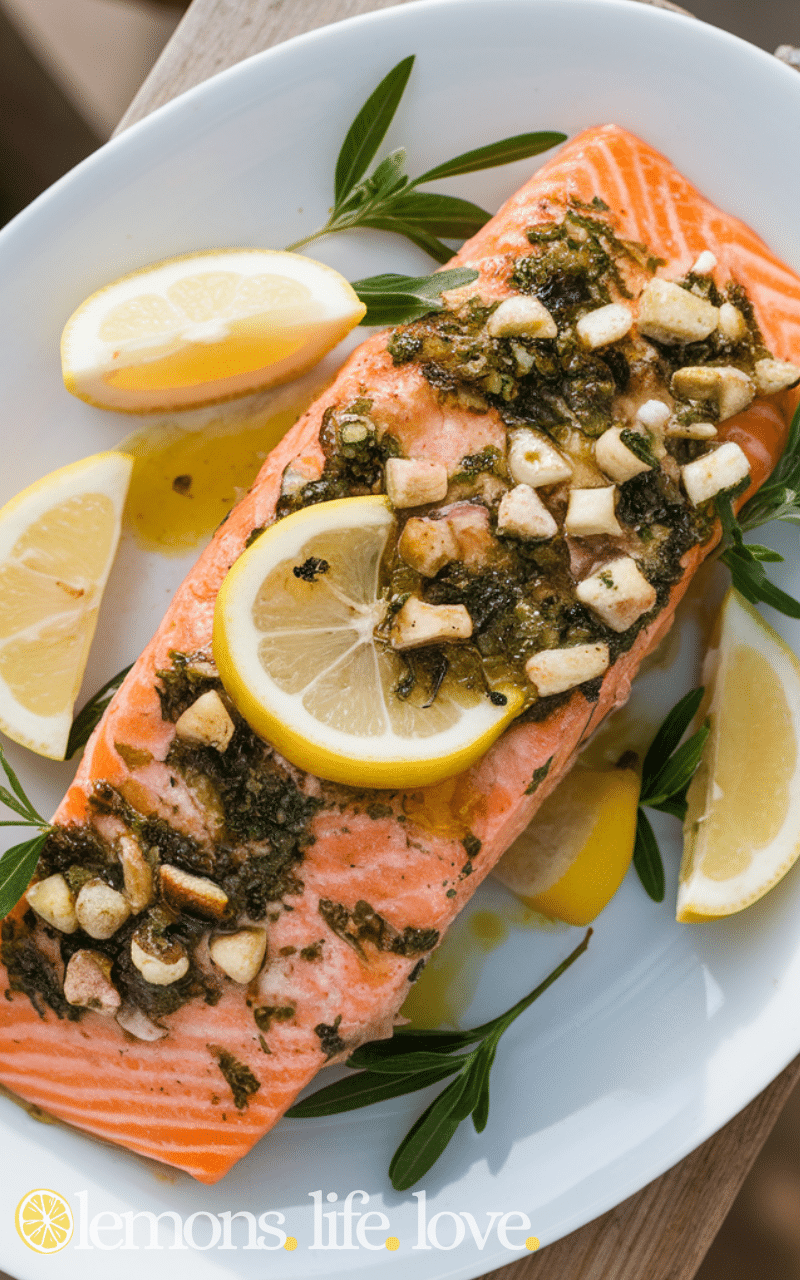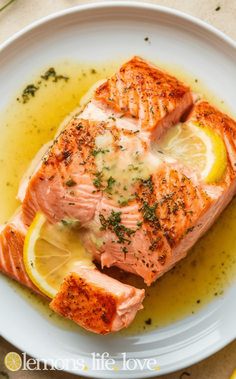 This baked salmon with lemon butter sauce recipe is tangy buttery and also very easy and it combines melted butter with lemon juice and garlic for a rich sauce and it is one of the most comforting baked salmon recipes and you can serve it with mashed potatoes or steamed vegetables and it keeps the salmon moist and flavorful and it is perfect for a cozy dinner and everyone will love the bright and savory taste and the sauce enhances the natural flavor of salmon and it makes your dinner elegant and satisfying.