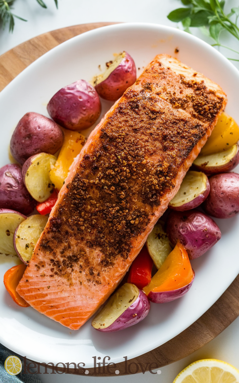 When I serve Baked Salmon Recipes I like pairing them with things that make the meal feel complete such as roasted sweet potato cubes, fresh salads, garlic green beans, lemony rice fluffy couscous, simple steamed broccoli or a little dollop of herbed yogurt and every pairing brings out a new layer of flavor and makes the salmon shine even more.