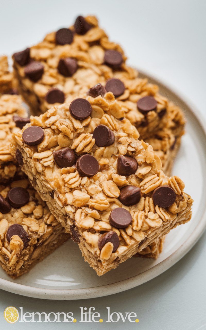 Peanut Butter Chocolate Chip Chewy Granola Bars are classic and easy to make and they combine peanut butter with mini chocolate chips so every bite of these chewy granola bars is soft and sweet and perfect for lunchboxes, snacks, or breakfast because they stay chewy and satisfying and everyone loves them and they are simple to make and customizable making them one of the best chewy granola bar recipes you can make at home for the whole family.