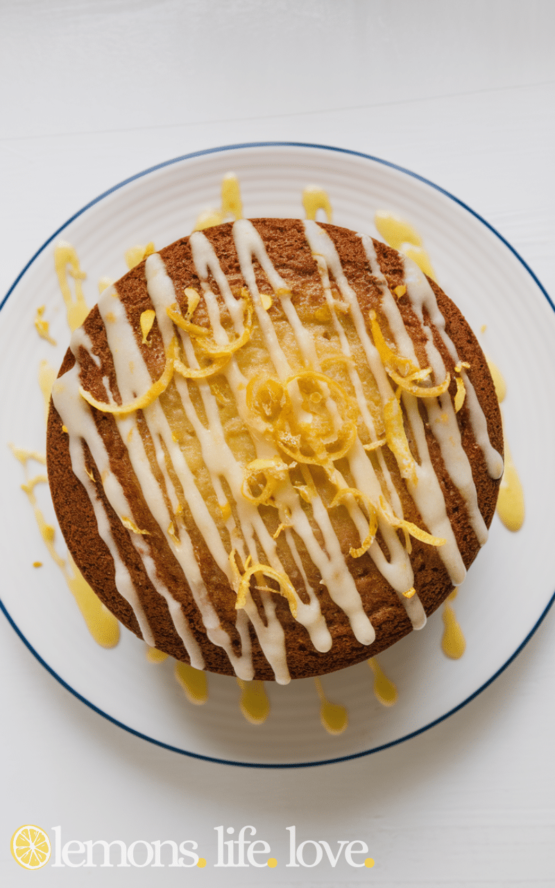 - Mix powdered sugar with lemon juice to make glaze and pour over warm cake.