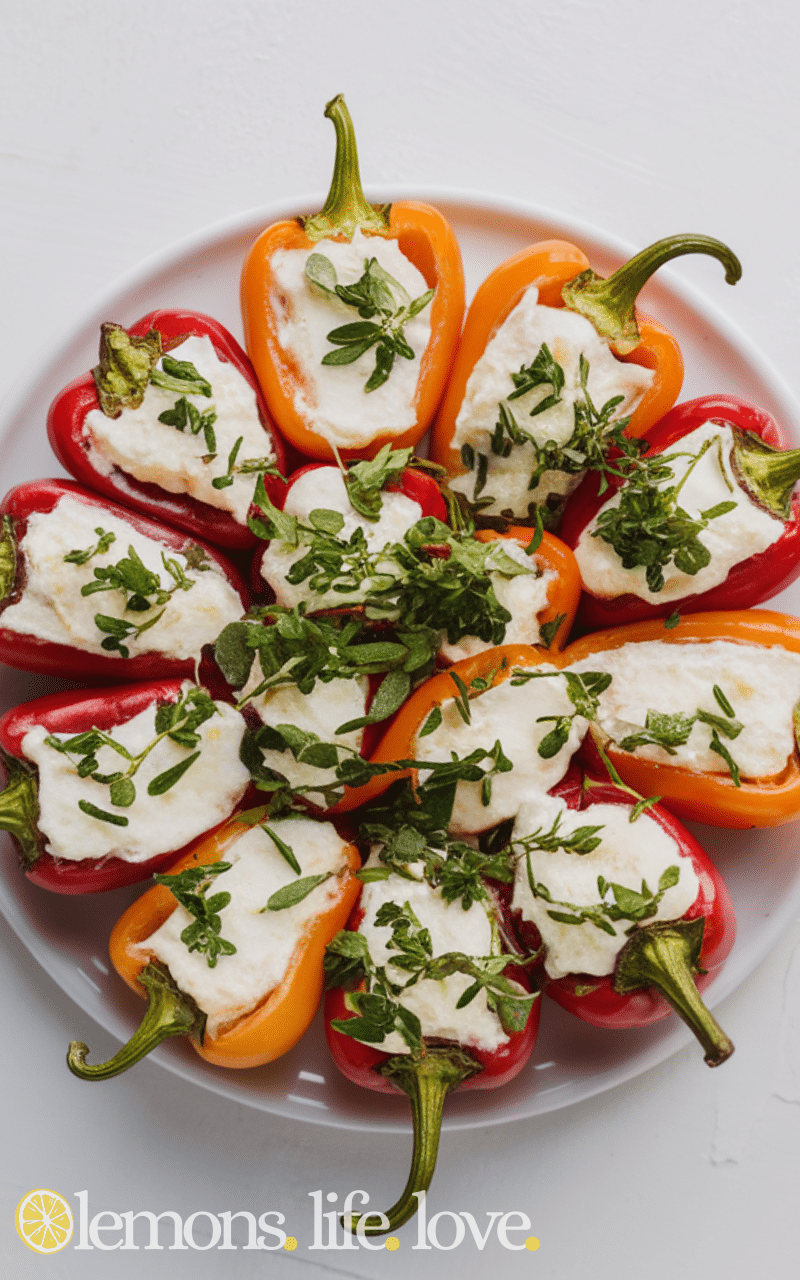 These Cream Cheese Stuffed Mini Peppers are easy to make and super colorful and delicious and the cream cheese adds a creamy, smooth texture and a mild tang that perfectly balances the sweetness of the peppers and the appetizer is perfect for parties and family gatherings and you can make them ahead of time and keep them fresh in the fridge and serve cold or slightly warm and everyone will love this simple and yummy cream cheese appetizer recipe.