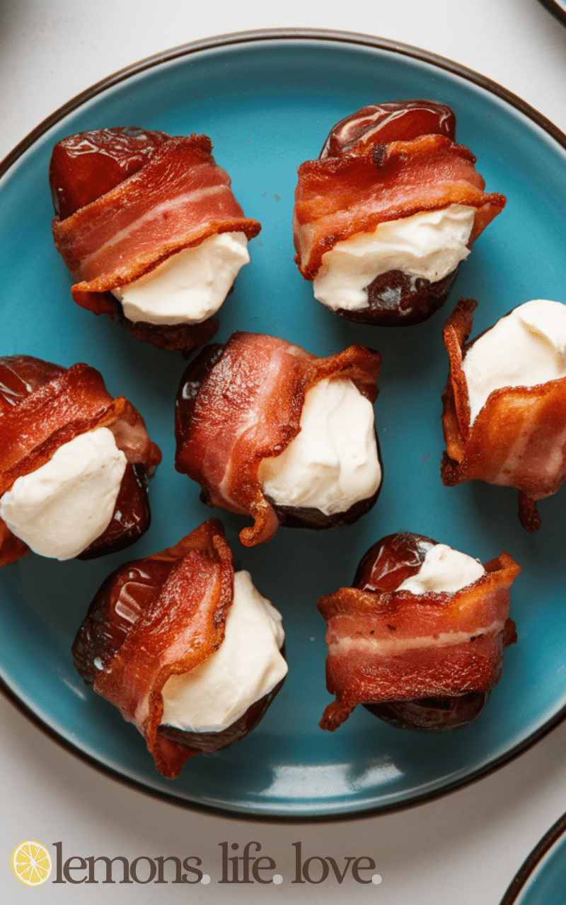 Bacon-Wrapped Cream Cheese Dates are sweet, salty, and creamy and the cream cheese creates a smooth center that balances the caramel-like sweetness of the dates and the salty bacon adds a crispy texture and the appetizer is super easy to assemble and bake and perfect for holidays or casual get-togethers and everyone will be amazed by this combination and it makes a delightful and irresistible cream cheese appetizer recipe that is always a hit.