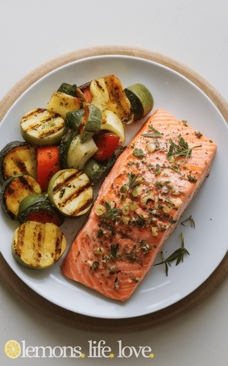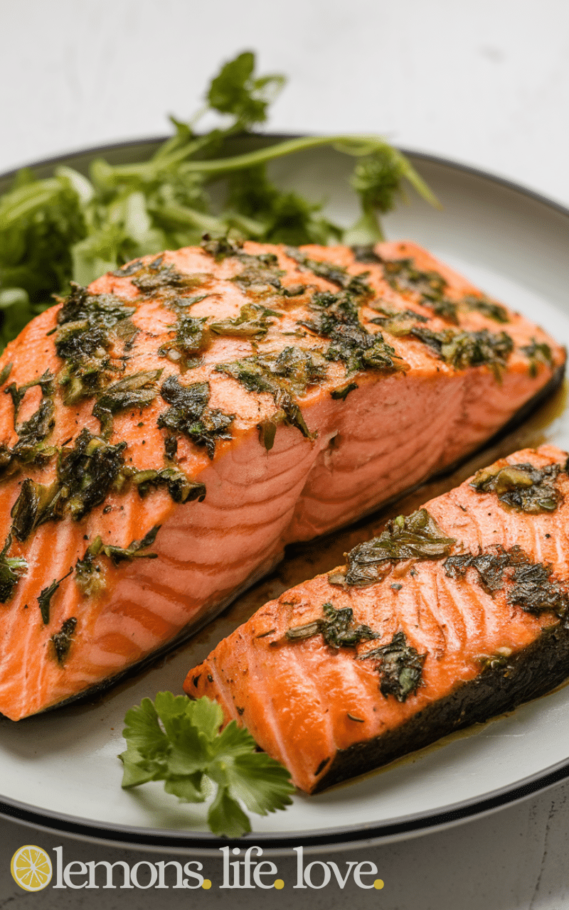 BBQ Salmon with Herb Marinade is fresh and fragrant, mixing rosemary, thyme, and parsley for amazing flavor. It grills perfectly, keeping the salmon tender and juicy. This recipe is easy to make, perfect for healthy meals, and everyone will love the fresh and vibrant flavors.