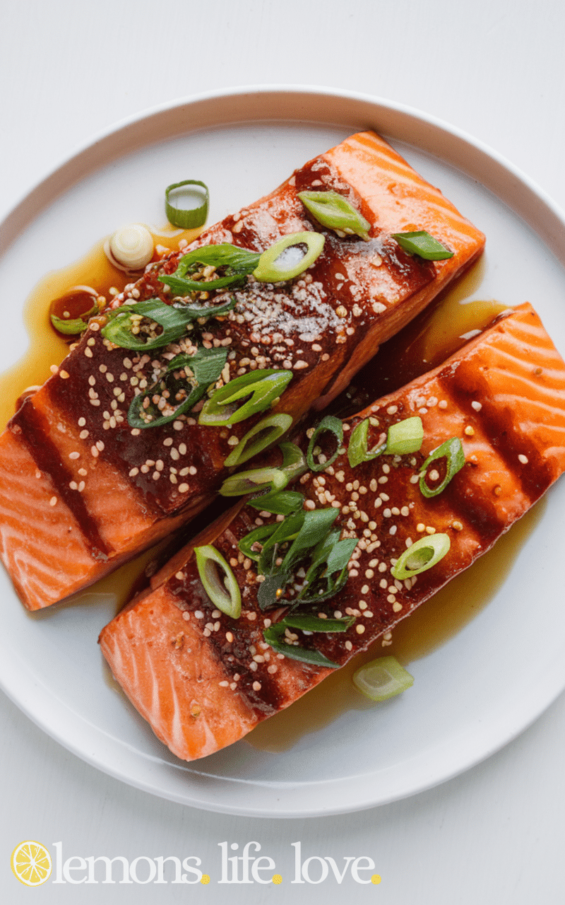 This Teriyaki Glazed BBQ Salmon is sweet and savory, bringing the rich flavors of teriyaki sauce to your BBQ salmon. It grills beautifully, giving your salmon a shiny and delicious glaze. It is perfect for dinner or lunch, easy to make, and your family will love the juicy and flavorful taste. Every bite is simple, satisfying, healthy, and tasty.