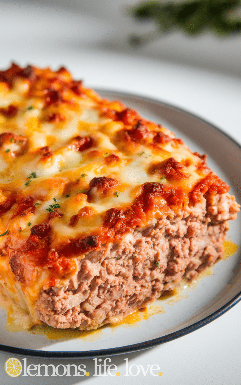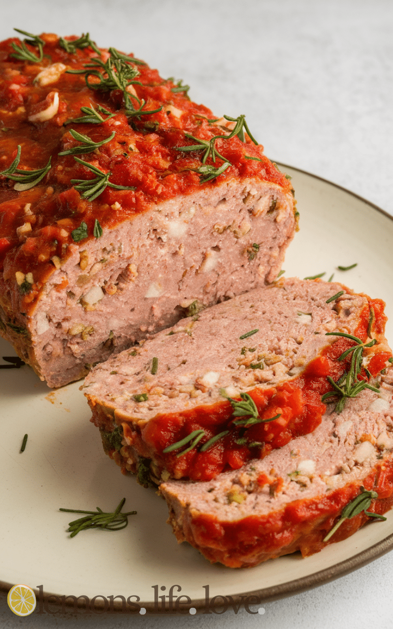 Italian style ground chicken meatloaf is aromatic and savory and it combines lean chicken with Italian herbs and Parmesan cheese and the tomato sauce topping makes it rich and flavorful and this ground chicken meatloaf is easy to prepare and perfect for weeknight dinners or gatherings and everyone will love the balance of herbs and spices and the melted cheese adds creaminess and flavor and baking it is simple and convenient and it pairs wonderfully with pasta or roasted vegetables and makes a hearty yet lighter alternative to beef meatloaf.