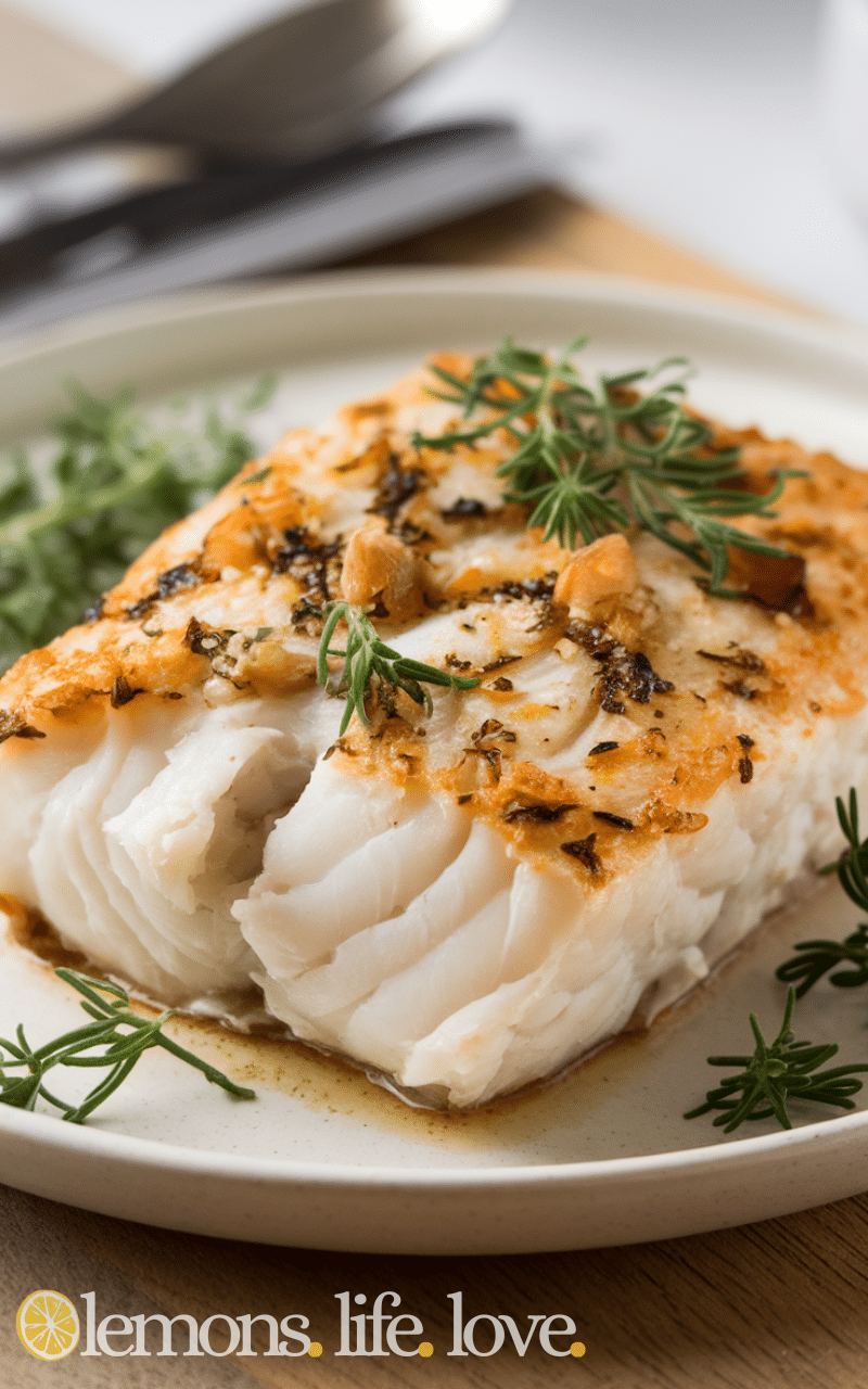 Baked Cod with Garlic and Herbs is a light and healthy high protein low carb recipe. Flaky cod pairs with fresh herbs and garlic, perfect for dinner or meal prep.