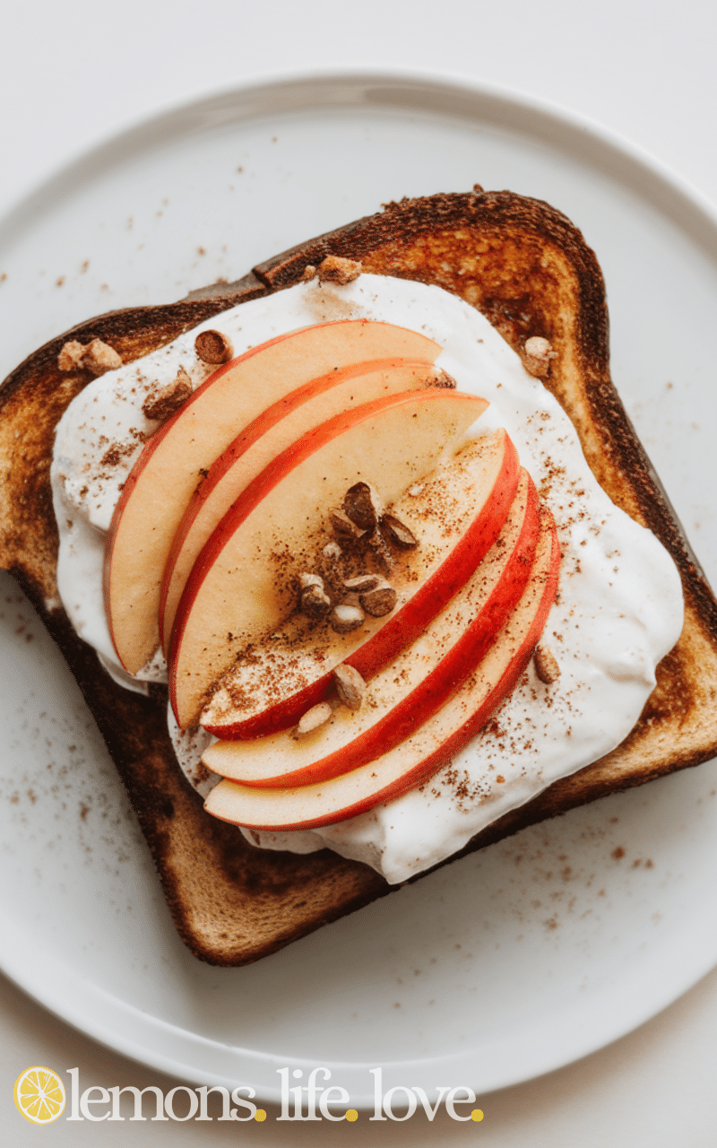 Apple Cinnamon Toast is a sweet low-calorie breakfast recipe because it uses whole-grain bread with fresh apple slices and a sprinkle of cinnamon, making it delicious and easy to make. It is perfect for busy mornings or a relaxing weekend, full of fiber, keeps you full and satisfied, quick to prepare, very tasty, low in calories, and a healthy alternative to pastries and sugary treats.