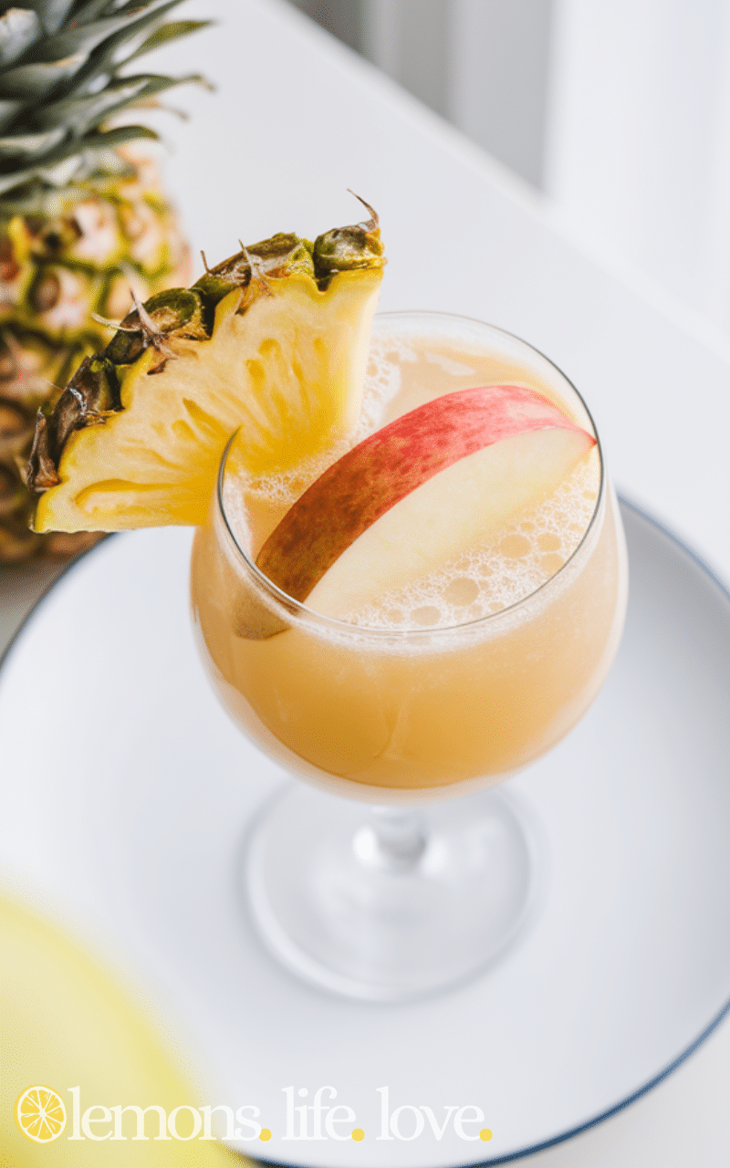 The Pineapple Apple Fizz is one of the yummiest pineapple mocktails, mixing pineapple juice with apple juice and sparkling water to create a sweet and fizzy tropical drink. Ice cubes keep it chilled, and an apple slice garnish adds a pretty touch. It is simple to make and perfect for gatherings.