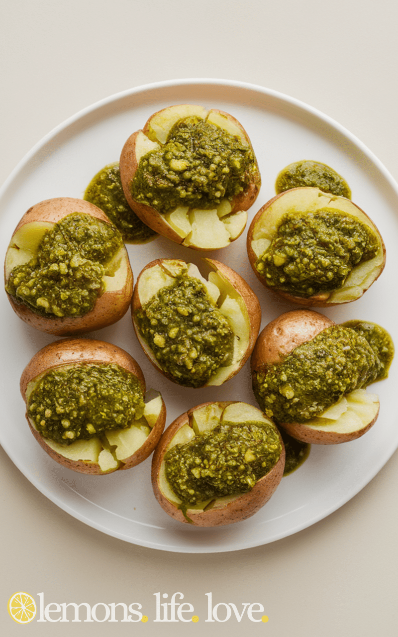 Pesto Smash Potatoes are bursting with basil flavor and freshness. Tossed with crispy golden smashed potatoes, this is the best smash potato recipe for a vegetarian-friendly and flavorful side dish. Perfect with grilled veggies or protein dishes.