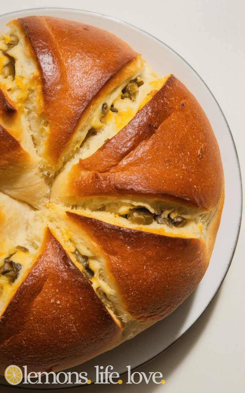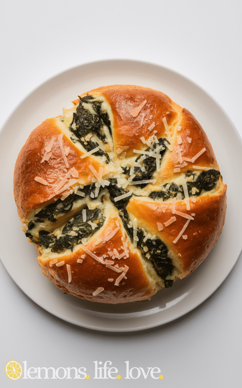 This is one of the most satisfying stuffed bread recipes because it combines melted cheese and tender spinach in the softest golden crust. The flavor is warm and comforting and every bite feels creamy and savory. You can enjoy it as a snack or pair it with soup for a complete meal since it’s full of rich flavor and perfectly cheesy goodness that makes everyone smile.