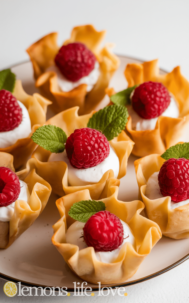 This tasty brie recipe is perfect for appetizers because the creamy brie pairs with sweet raspberries and flaky phyllo cups and you can make them bite-sized for parties or snacks because everyone will love this easy and tasty brie treat that is beautiful, simple, and delicious.
