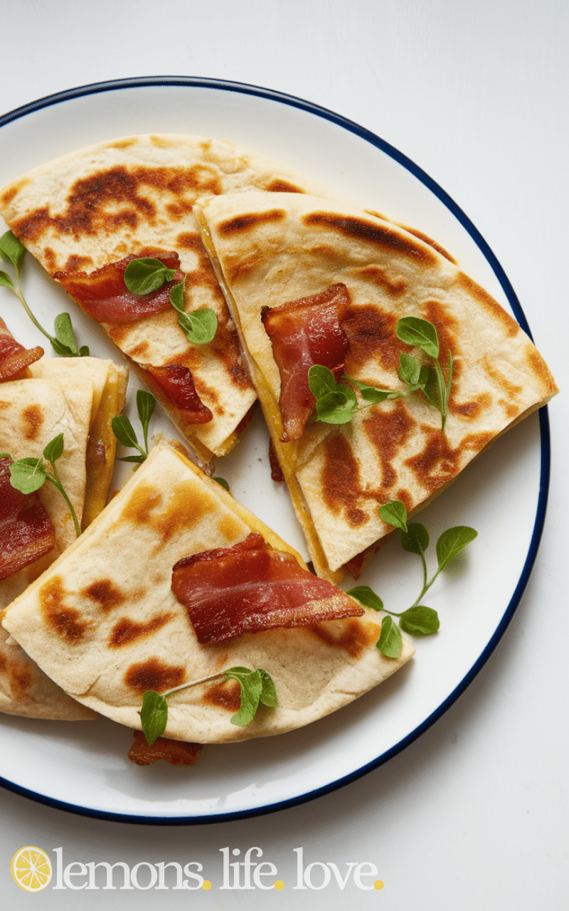 This tasty brie recipe is a fun twist on traditional quesadillas because brie melts beautifully with crispy bacon and adds a creamy texture and smoky flavor and you can make it quickly for lunch or dinner because everyone will enjoy this tasty brie treat that is simple yet indulgent.