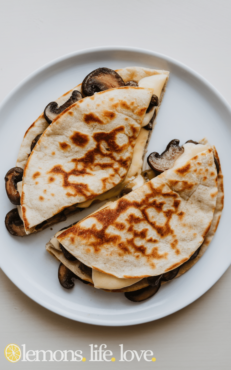 This tasty brie recipe makes a cozy dinner because brie melts so well with sautéed mushrooms and adds a creamy texture and earthy flavor and you can finish it in minutes on the stove because everyone will love this warm, cheesy, tasty brie quesadilla that is simple yet filling and a perfect weeknight meal.