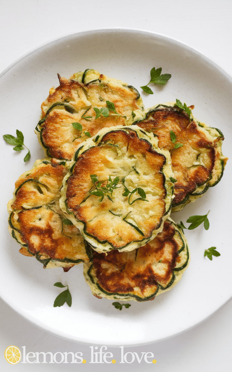 Parmesan herb zucchini fritters are fragrant, golden, and slightly crispy, a must-try in delicious and easy zucchini fritter recipes. Fresh herbs like parsley and thyme add a burst of flavor while parmesan brings a nutty richness. Fry until golden brown and serve with a squeeze of lemon or a dollop of yogurt for a bright, fresh twist. These fritters are perfect as a side dish or a vegetarian main.