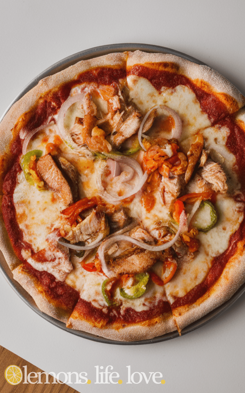 BBQ chicken pizza is an amazing homemade pizza recipe that combines sweet and tangy barbecue sauce with juicy chicken pieces and melted mozzarella and red onions and it is a perfect homemade pizza recipe for a family dinner because it is quick to prepare and packed with flavors and you can make your pizza crust from scratch or use store-bought dough and when baked the homemade pizza recipe turns golden and bubbly and it is one of the best homemade pizza recipes because everyone will love the smoky barbecue flavor.