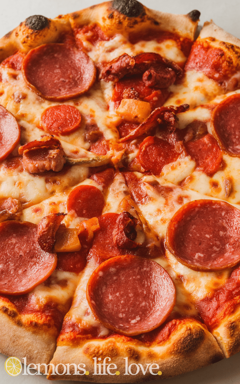 Meat lovers pizza is a hearty homemade pizza recipe that combines multiple types of meat like sausage and bacon and pepperoni with mozzarella on a crispy homemade pizza crust and this homemade pizza recipe is perfect for anyone who loves rich and savory flavors and it is easy to make at home and when baked the homemade pizza recipe turns golden and bubbly and the meats release flavor that blends perfectly with the melted cheese and it is one of the best homemade pizza recipes for game nights or family dinners and everyone will enjoy this meaty homemade pizza recipe.