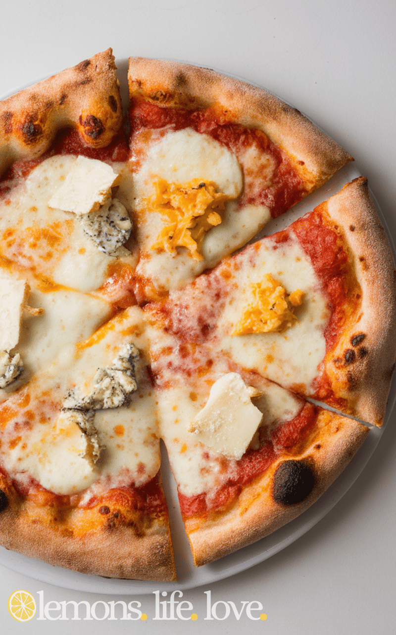 Four cheese pizza is a cheesy homemade pizza recipe that is a dream for cheese lovers and it combines mozzarella and cheddar and parmesan and gorgonzola on a crispy pizza crust and this homemade pizza recipe is easy to make at home because you just need your favorite cheeses and pizza dough and when baked the homemade pizza recipe turns bubbly and golden and the flavors blend perfectly and it is one of the best homemade pizza recipes for anyone who loves rich cheesy flavor and wants a quick and delicious homemade pizza option.