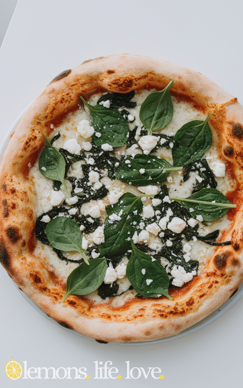 Spinach and feta pizza is a fresh and healthy homemade pizza recipe that is simple to make and full of flavor because it combines tender spinach leaves with salty feta cheese on a homemade pizza crust and this homemade pizza recipe is great for lunch or dinner and you can add garlic or herbs to enhance the flavor and when baked the homemade pizza recipe becomes golden and cheesy and it is one of the yummiest homemade pizza recipes that anyone who loves green toppings will enjoy and it is perfect for a quick and delicious homemade pizza night at home.