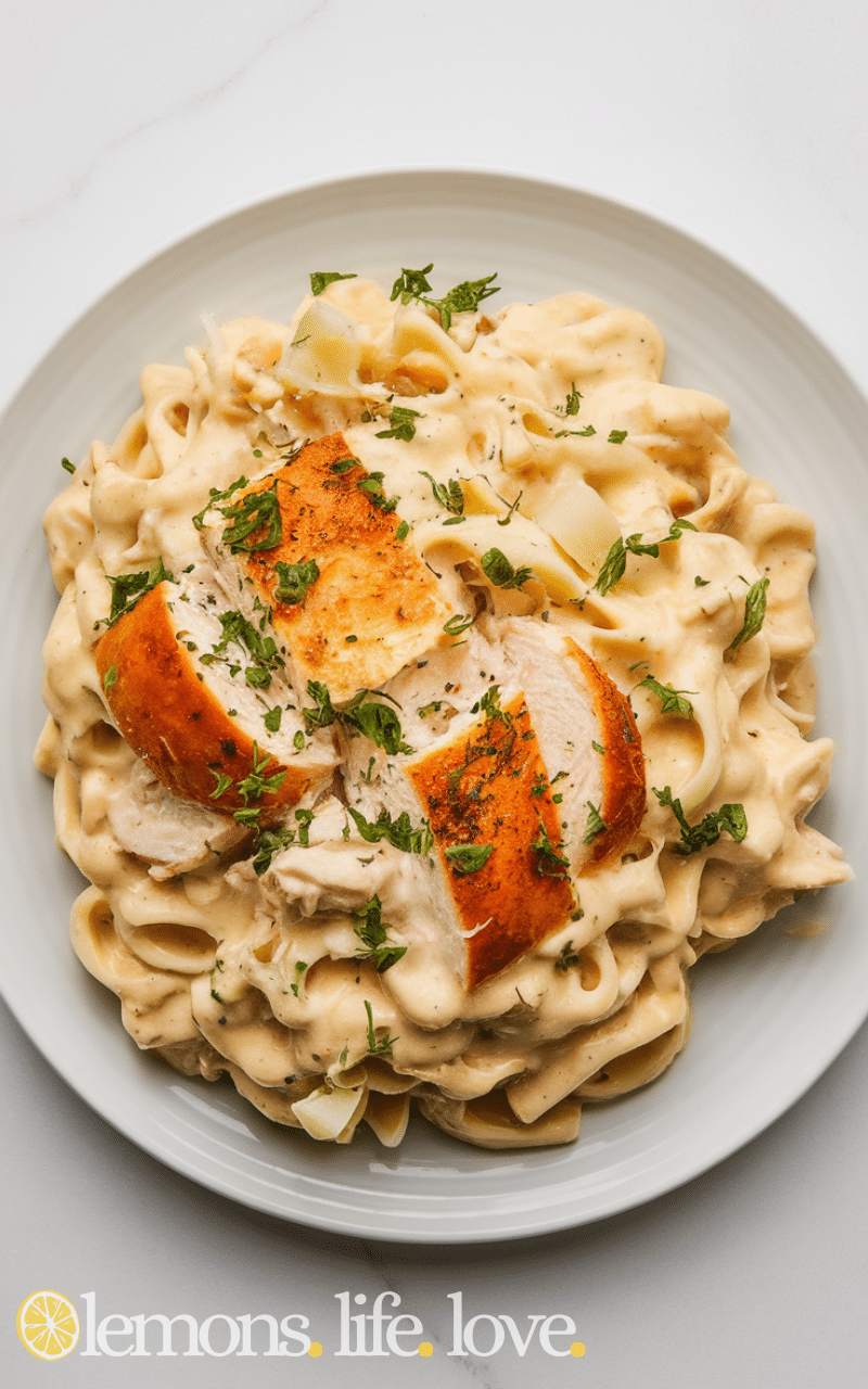 Creamy and comforting, this chicken Alfredo is simple and satisfying. Add chicken, pasta, cream, and seasonings into the slow cooker and let it cook. This slow cooker dump recipe delivers rich flavor with minimal effort, perfect for a weeknight dinner that feels indulgent.