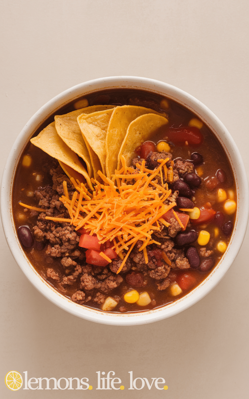 Taco soup is an easy crowd-pleaser. Dump ground beef, beans, corn, tomatoes, and taco seasoning into the slow cooker. Let it simmer into a hearty, flavorful soup. This slow cooker dump recipe is one of the easiest and most delicious ways to feed a family with minimal effort.