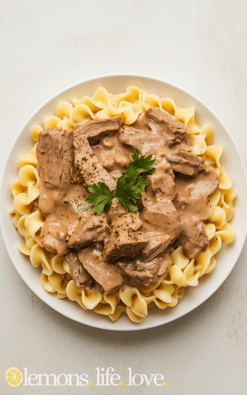 9. Slow Cooker Dump Beef Stroganoff