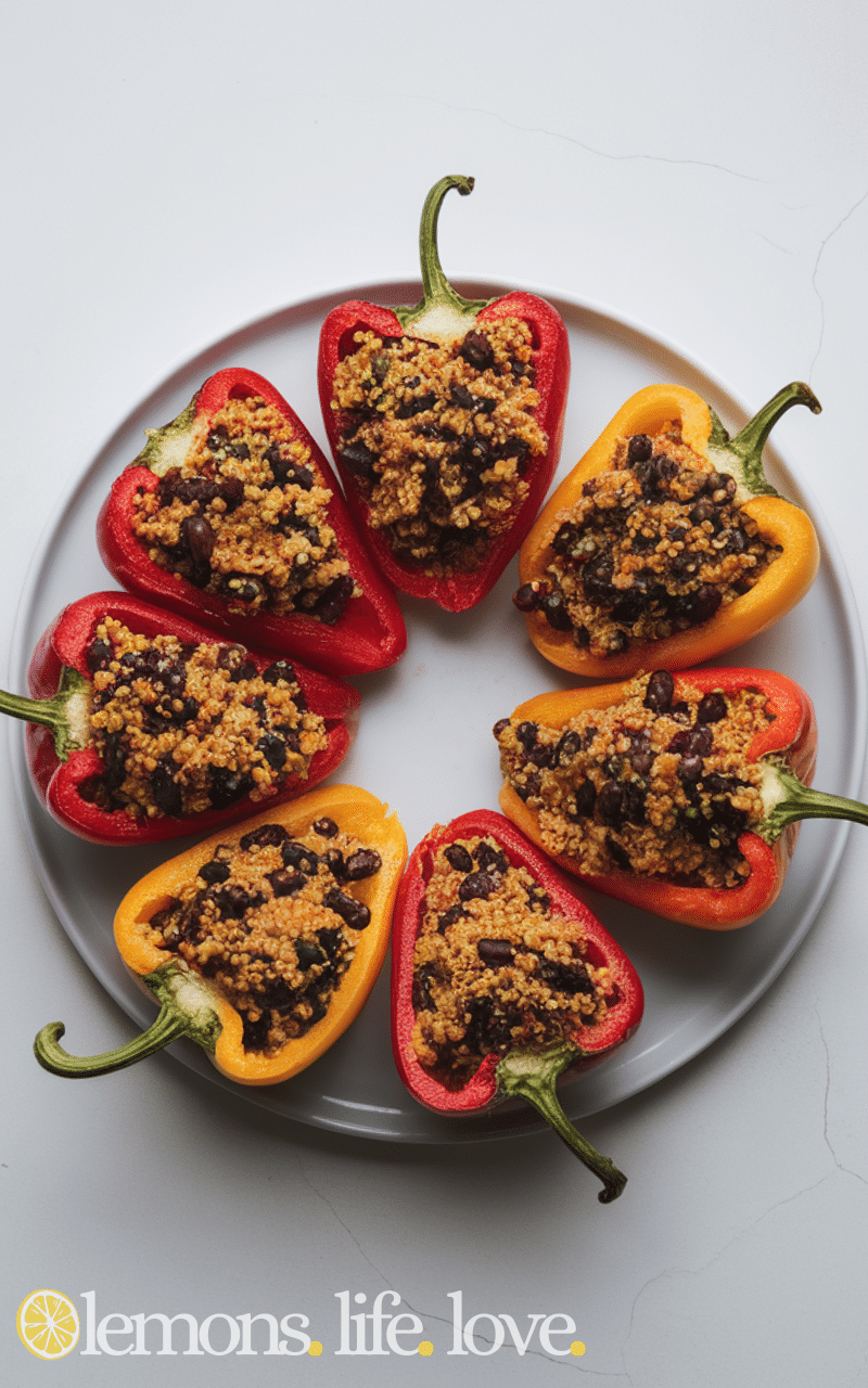 Quinoa & Black Bean Stuffed Peppers are a colorful, high-protein vegetarian dinner that’s both satisfying and nutritious. Each pepper is loaded with protein-rich quinoa, hearty black beans, and fresh vegetables, seasoned with spices that bring warmth and depth. Perfect for weeknight dinners, this high-protein vegetarian dinner is easy to prepare, filling, and keeps well for leftovers. It’s a delicious way to enjoy vegetables while getting a boost of protein in every bite. Serve with a side salad for a complete, vibrant meal everyone will love.