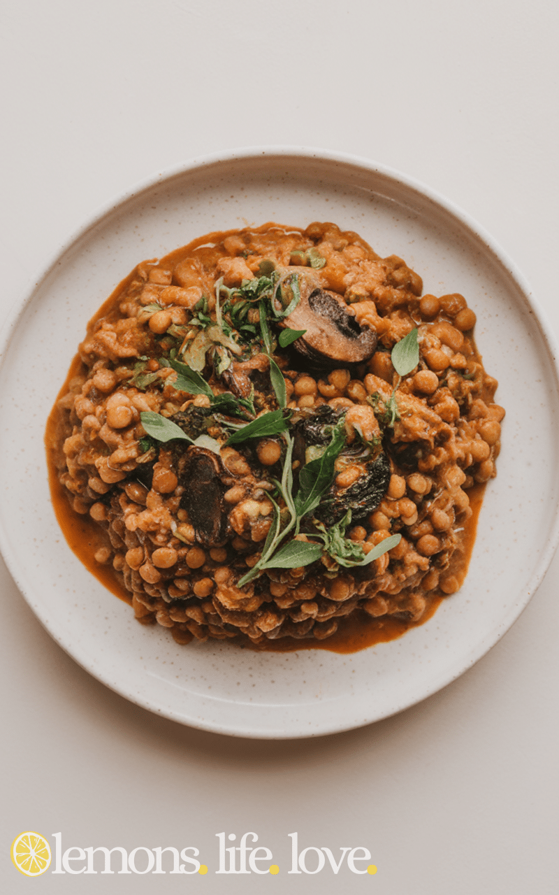 Lentil & Mushroom Bolognese is a hearty, high-protein vegetarian dinner that’s perfect over pasta or zucchini noodles. Lentils provide protein and a satisfying texture, while mushrooms add depth and umami flavor. Simmered in a rich tomato sauce with garlic, onion, and herbs, this dish is comforting, filling, and ideal for family dinners. It’s an easy high-protein vegetarian dinner that’s packed with flavor, hearty enough to satisfy meat-eaters, and makes for delicious leftovers. Top with fresh basil and a sprinkle of parmesan or nutritional yeast.