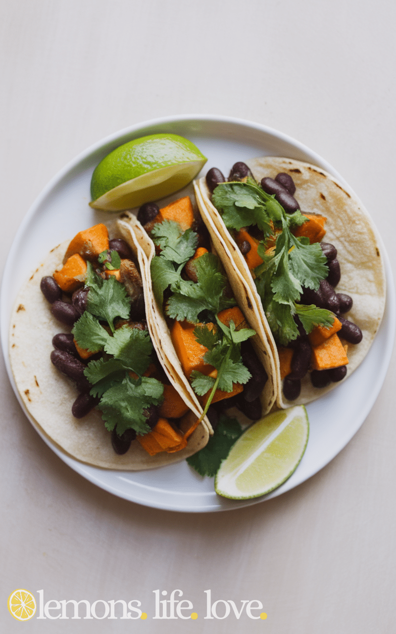 Black Bean & Sweet Potato Tacos are a fun, high-protein vegetarian dinner full of flavor and texture. Protein-packed black beans pair perfectly with roasted sweet potatoes, avocado, and fresh veggies. Seasoned with cumin, paprika, and lime juice, these tacos are easy to make and a crowd-pleaser. They’re perfect for weeknight dinners or casual gatherings, offering a delicious, satisfying, and healthy high-protein vegetarian dinner option. Serve with your favorite salsa or yogurt sauce for a zesty touch that elevates every bite.