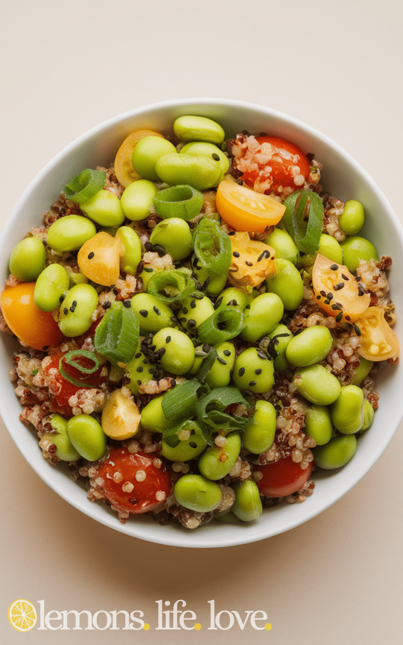 Edamame & Quinoa Salad is a protein-packed vegetarian dinner that’s vibrant, fresh, and satisfying. Quinoa provides a complete protein source while edamame adds extra protein and a satisfying bite. Tossed with cherry tomatoes, bell peppers, and a light lemon dressing, this salad is perfect for warm evenings or make-ahead lunches. It’s easy to prepare, refreshing, and a delicious high-protein vegetarian dinner that doesn’t feel heavy. Serve chilled or at room temperature for a colorful, wholesome meal full of nutrients and flavor.