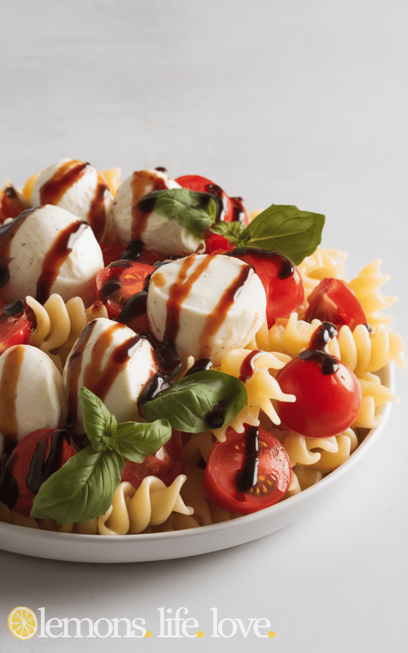 This delicious pasta salad recipe celebrates the fresh flavors of Italy with mozzarella, tomatoes, and basil tossed with pasta and a drizzle of olive oil. It’s simple, colorful, and absolutely delicious for any meal.