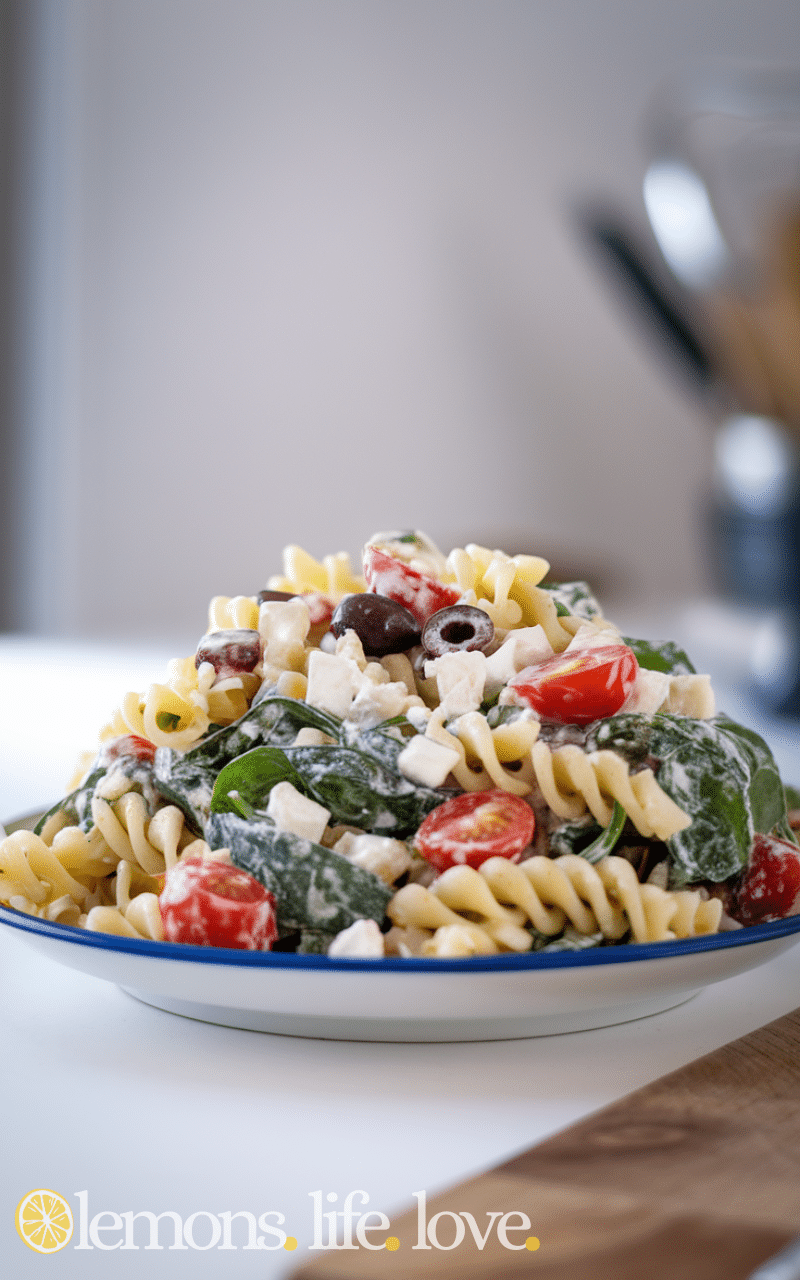 This delicious pasta salad recipe mixes tender spinach, salty feta, and tangy vinaigrette for a light and flavorful dish. It’s perfect for vegetarians or anyone who loves fresh and wholesome meals.