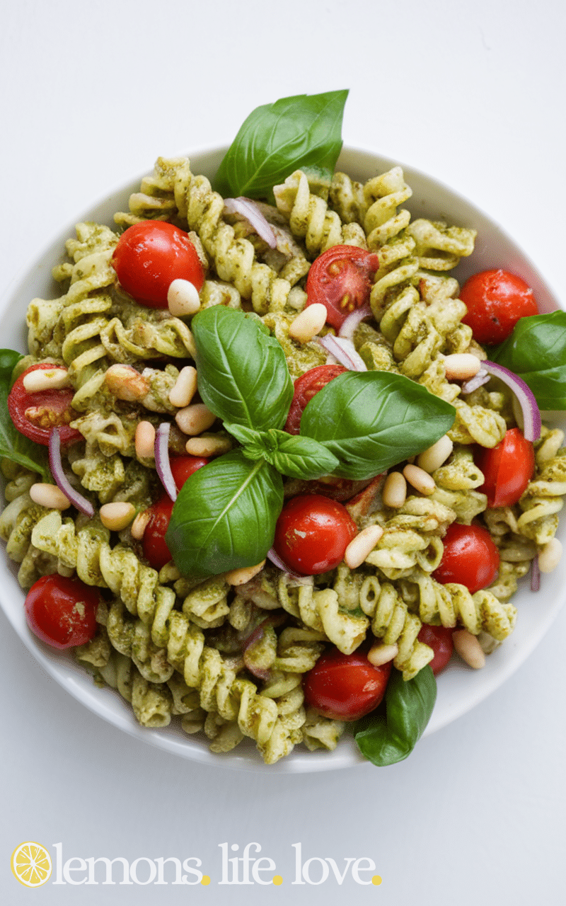 Pesto Pasta Salad is a vibrant, flavorful dish perfect for easy lunch recipes in 20 minutes. Cooked pasta is tossed with fresh pesto, cherry tomatoes, and mozzarella balls for a quick and delicious lunch. It’s satisfying, fresh, and can be served warm or cold, making it ideal for meal prep or a last-minute lunch solution. The bright, herby flavor of pesto makes every bite irresistible.