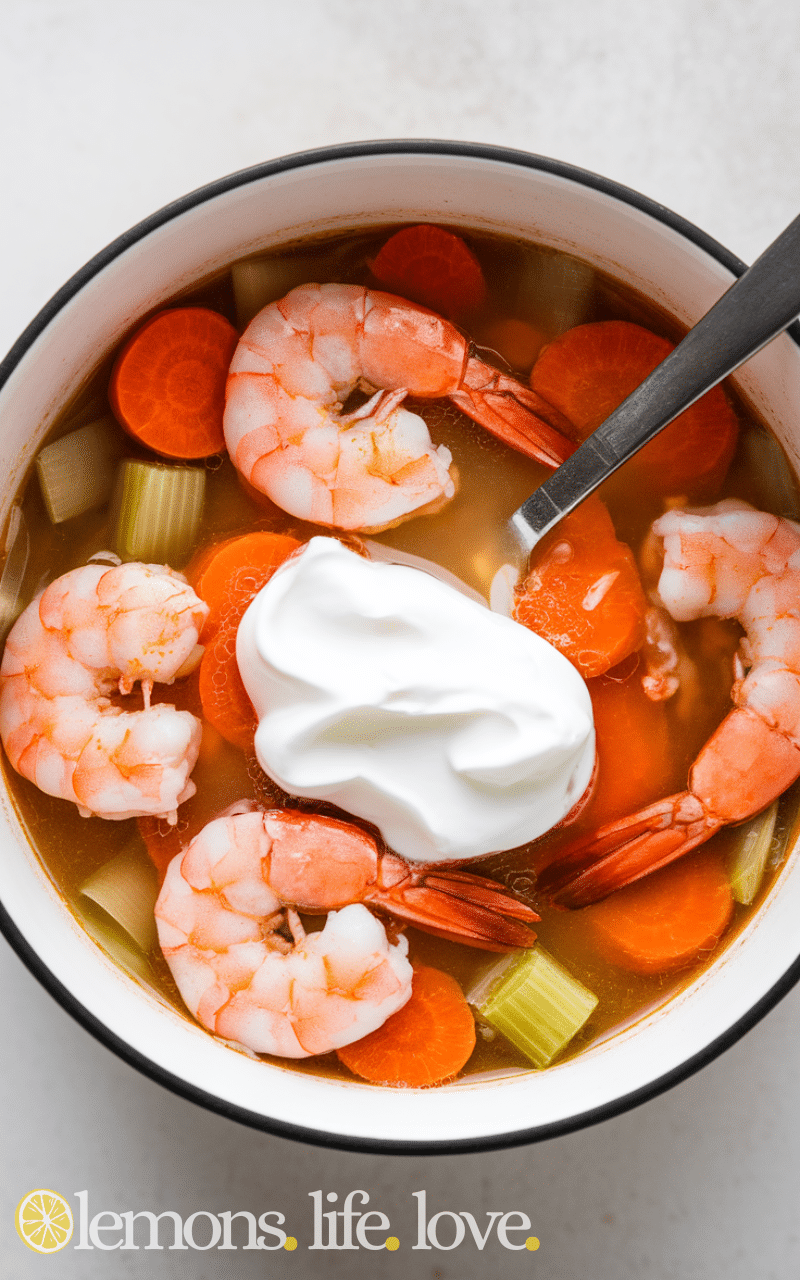 7. Serve warm for a creamy shrimp soup recipe