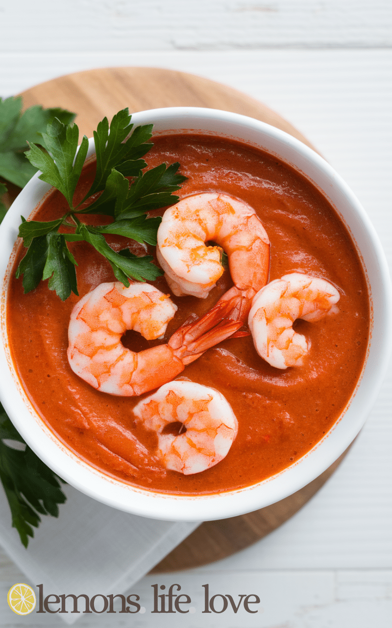 5. Garnish with parsley and serve hot for a classic shrimp soup recipe