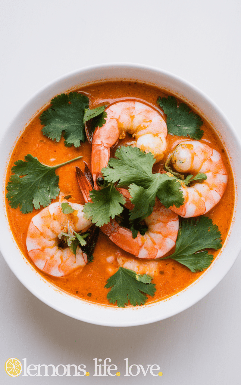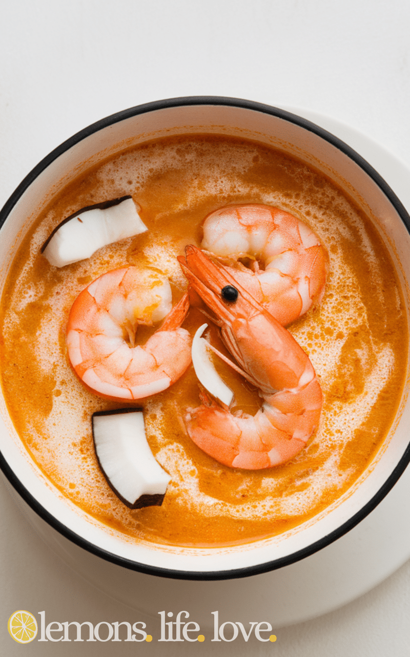 7. Serve hot for a creamy shrimp and coconut curry soup recipe