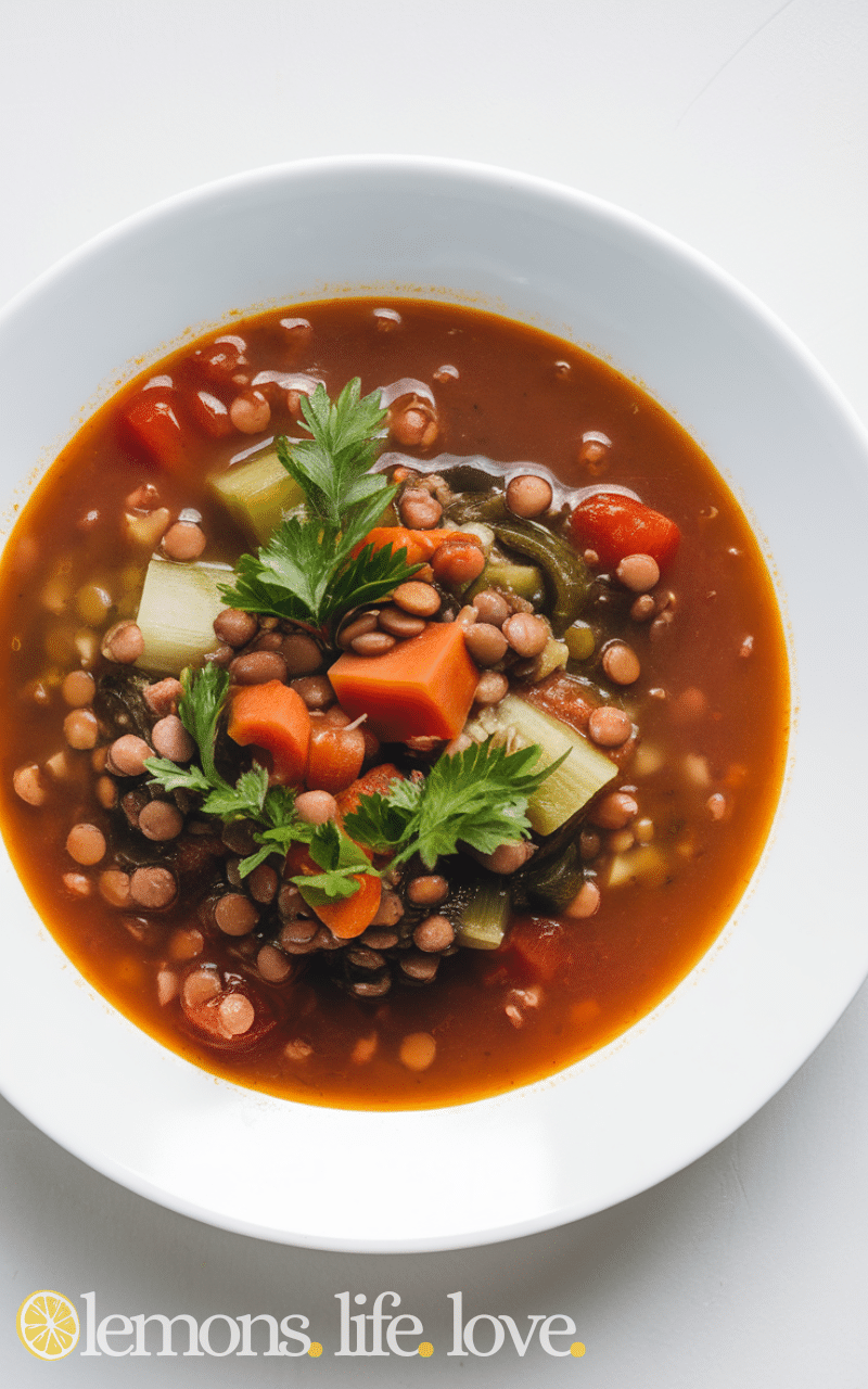 This hearty lentil dish is one of the simplest winter soup recipes because it is full of nutrients and earthy flavor and it fills your stomach with comfort while being healthy and delicious so you can enjoy it as a meal that brings energy and warmth during cold evenings when you crave something cozy and wholesome.
